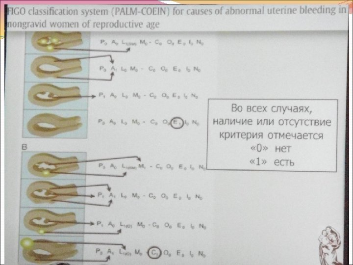 Классификационная система маточных кровотечений FIGO (2011) Номенклатурная система для описания симптомов АМК Классификационная система причин АМК в репродуктивном возрасте (PALM- COEIN)