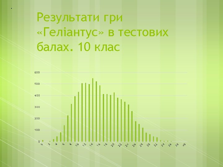 Результати гри «Геліантус» в тестових балах. 10 клас