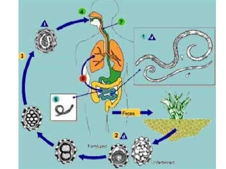 аскаридоз • Аскаридоз Ascaric lumbricoides коздырғыш, 15 -25 см денесі кутикула жабылған. Тəулігіне 240 000 мың жұмыртқа шығарады, аш ішек өмір сүреді, миграция фазасында улану, сенсибилизация дамыды, өлгенде личинка аллергия дамытады, ішек қабырғаларын зақымдайды, витамин жеткілісіздігіне иммунитет төмендеуіне əкеледі