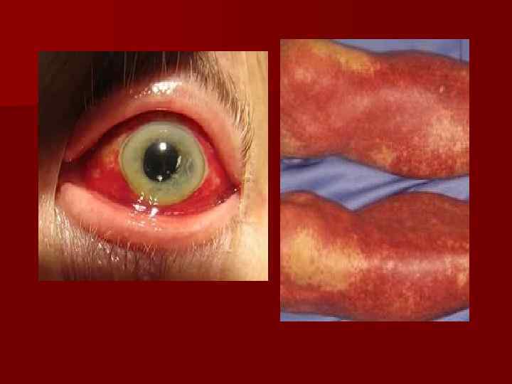 Проявления синдрома: Ø Головные боли, головокружение; Ø Стенокардитические боли; Ø Тромбозы и геморрагии; Ø Гиперемия лица и ладоней; Ø Кожный зуд после холодной воды и горячей ванны; Ø Эритромелалгия-эритема и боли в кончиках пальцев; Ø АД.