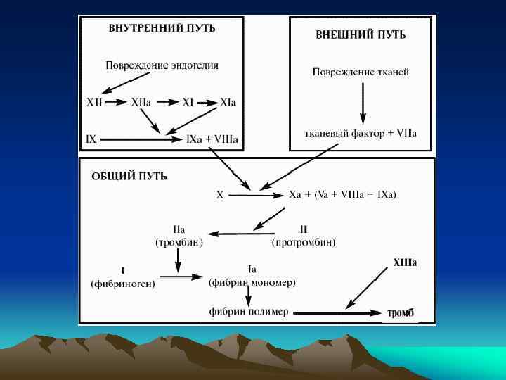 Плазменные факторы свертывания крови • • • • I. Фибриноген II. Протромбин III. Фактор свёртывания крови (Тромбопластин) IV. Ионы Са++ V. Фактор свёртывания крови (Проакцелерин) VI. VII. Фактор свёртывания крови (Проконвертин) VIII. Фактор свёртывания крови (Антигемофильный глобулин) IX. Фактор свёртывания крови (фактор Кристмаса) X. Фактор свёртывания крови (фактор Стюарта-Прауэра) XI. Фактор свёртывания крови (фактор Розенталя) XII. Фактор свёртывания крови (фактор Хагемана) XIII. Фибриназа (Фибрин-стабилизирующий фактор, фактор Флетчера)