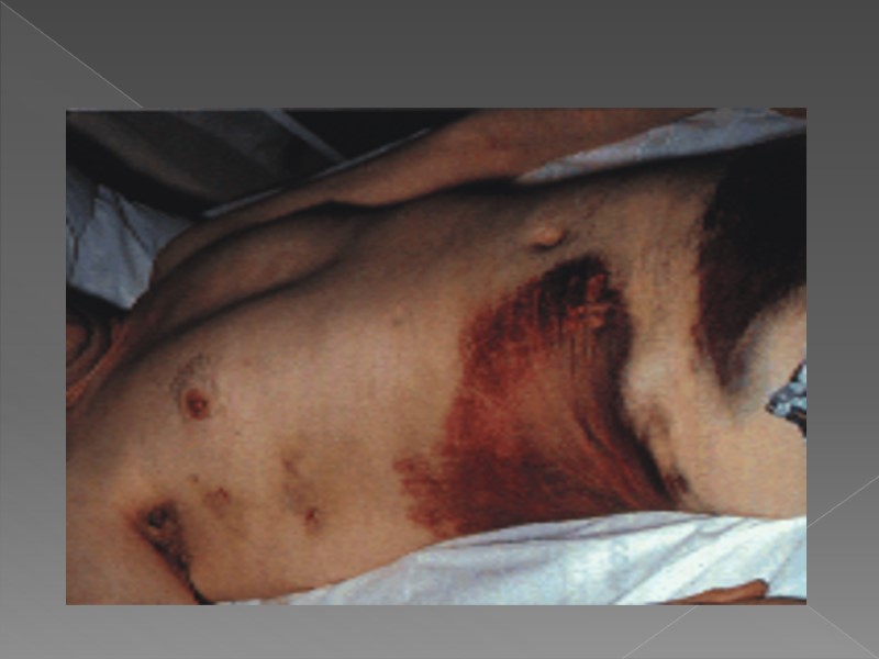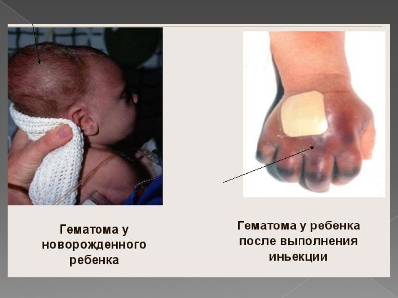 Клиника кровоизлияния в большие суставы, гематомы (подкожные, внутримышечные), сильные и длительные посттравматические кровотечения. Возможны кровоизлия-ния в органы брюшной полости, желудочно-кишечные кровотечения