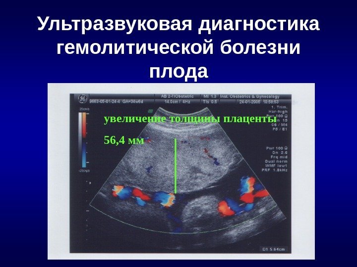 Ультразвуковая диагностика гемолитической болезни плода увеличение толщины плаценты 56, 4 мм