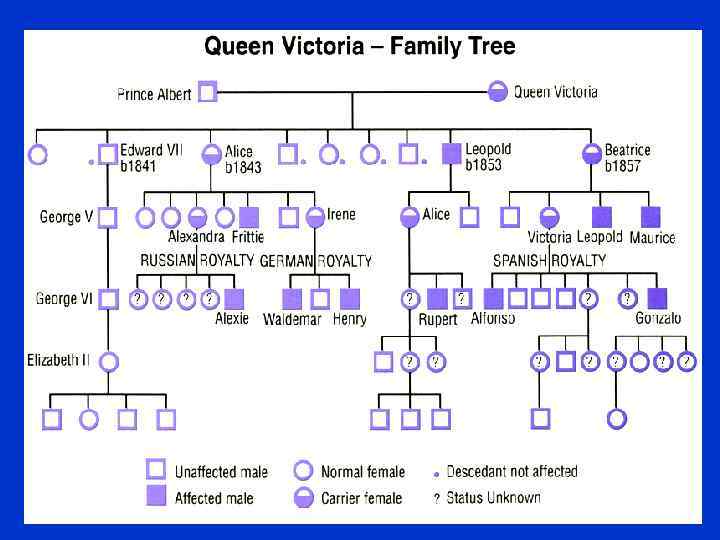 Диагностика • Наиболее достоверным в диагностике как заболевания, так и носительства гемофилии является молекулярно-генетическое исследование. Методика выявления полиморфизма ДНК позволяет диагностировать нарушения генов факторов свертывания с достоверностью >99%. Ее можно использовать в пренатальной диагностике (исследуя ДНК, экстрагированную из клеток ворсин хориона на 10 -й неделе беременности или позднее). • Методика ПЦР (полимеразной цепной реакции), позволяющая выявлять конкретные изменения в хромосомах: делецию, инверсию и т. п. • Составление подробного генеалогического древа.