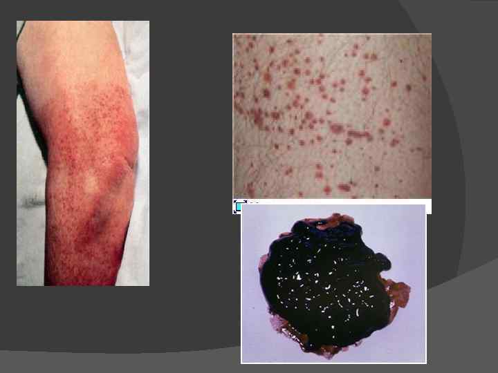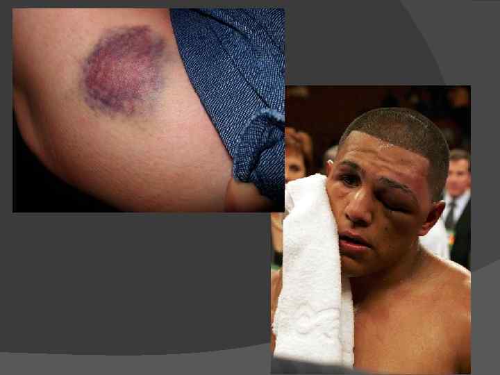 Если массивная кровопотеря развивается быстро кровотечение называется – профузным. По отношения к внешней среде: 1. Наружное 2. Внутреннее: в полостях-гемоторакс, гемоперитонеум, гемоперикардиум, гемартроз 3. Смешанное Отдельные виды: Гематома – скопление крови между тканями. Кровоподтек (синяк) – небольшие подкожные гематомы, вызванные повреждением мелких сосудов. Петехии – точечные кровоизлияния (1 -2 мм в диаметре) в кожу или слизистые оболочки Экхимозы - кровоизлияния (около 3 мм в диаметре) в кожу Мелена – черный дегтеобразный стул