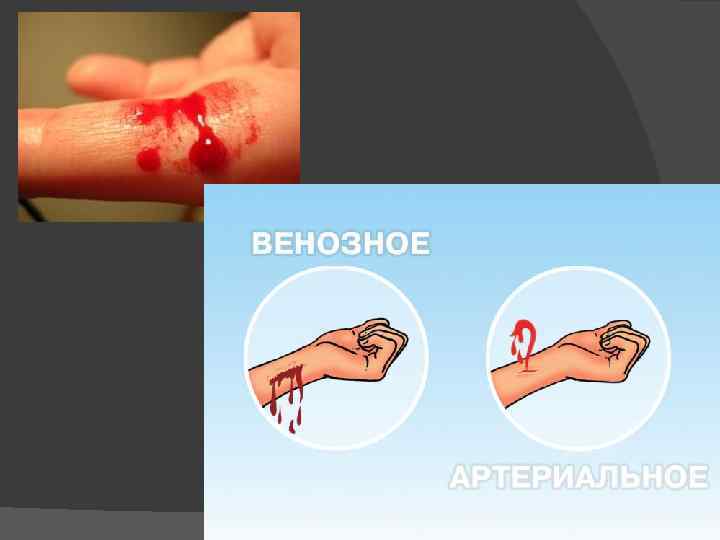 По интенсивности: 1. профузное (пульсирующей или широкой струей) 2. умеренное (медленная или узкая струйка) 3. слабое (медленное заполнение раны или падение каплями)