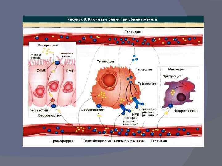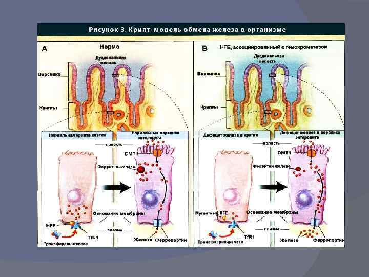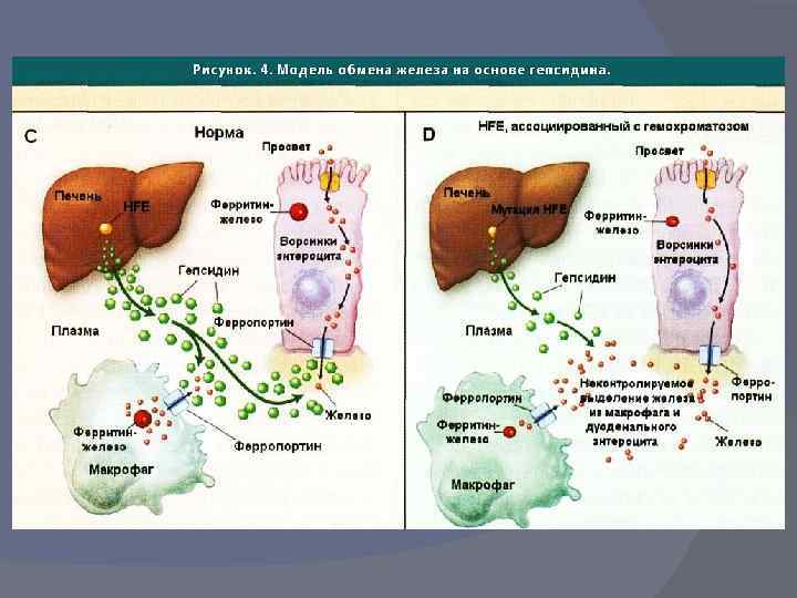 Этиология В 1976 г. Simon др. продемонстрировали, что ген, детерминирующий возникновение гемохроматоза, расположен на 6 хромосоме. В 1996 г. этот ген был идентифицирован Feder и др. и получил название HFE-гена. Было установлено, что он кодирует протеин HFE, имеющий сходство по структуре с белками главного комплекса гистосовместимости 1 класса. В дальнейшем была доказана прямая связь между белком HFE и трансферрин-опосредованной регуляцией метаболизма железа в