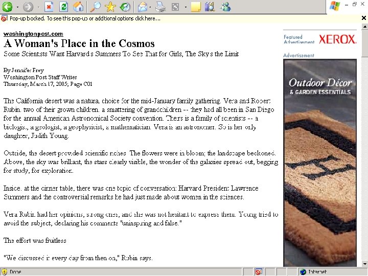 Gender and Education n Educational System and Gender q Evidence of gender disparity in terms of kinds of jobs children think about re: future employment n Evolution over time: Doctorates in physics earned by women have increased from 3% of total in 1970 to 15. 5% in 2002; engineering, <1% to 17%, etc.