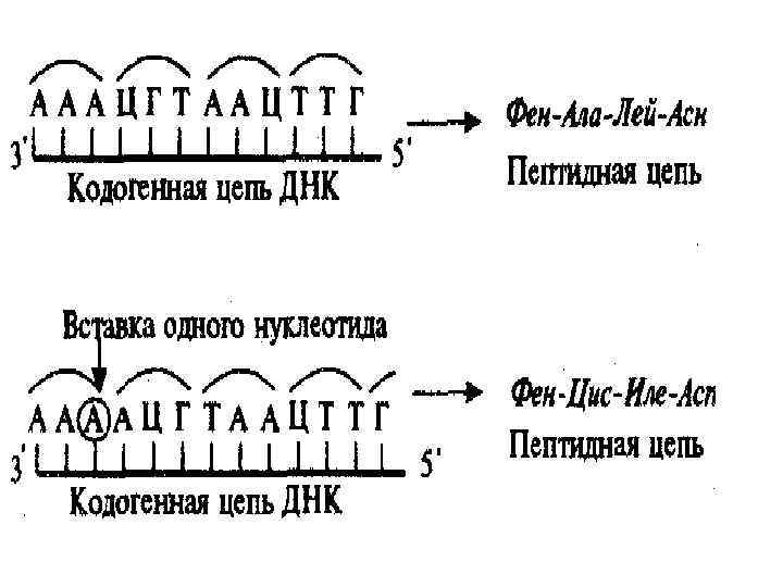 2. Рамкадан жылжуды санау – делециямен, инсерциямен, үшнуклеотидті қайталау санының өзгеруімен және транспозон дардың нуклеотидті тізбекке қойылуынан пайда болады. Инверсия – ДНҚ бөлігінің 180 градусқа айналуы, аминқышқыл тізбектерінің бұзылысына алып келеді.