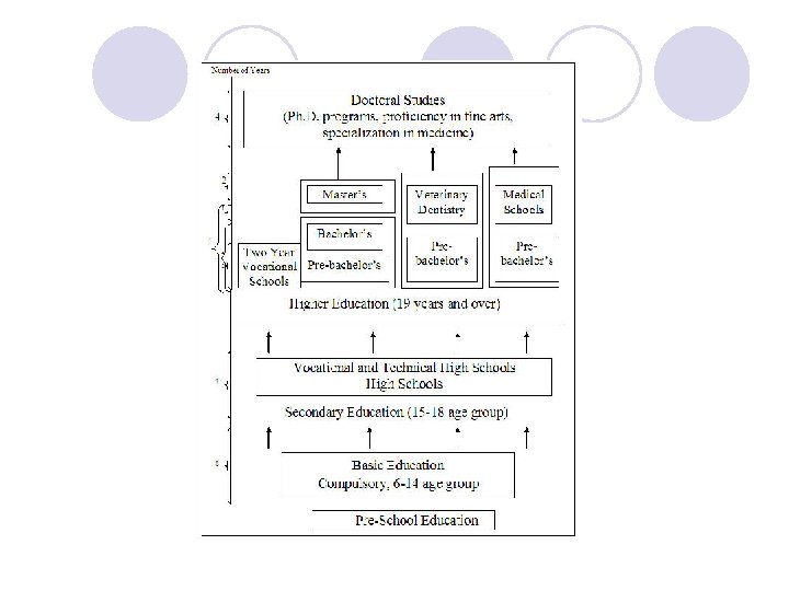 General high schools are educational institutions that prepare students for institutions of higher learning. They implement a four-year program over and above basic education, and comprises students in the 15 -18 year age group. Vocational and technical high schools provide specialized instruction with the aim of training qualified personnel. The duration of instruction in these schools is also four years.