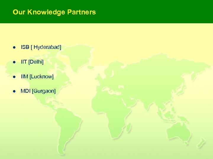 Our Knowledge Partners l ISB [ Hyderabad] l IIT [Delhi] l IIM [Lucknow] l MDI [Gurgaon]