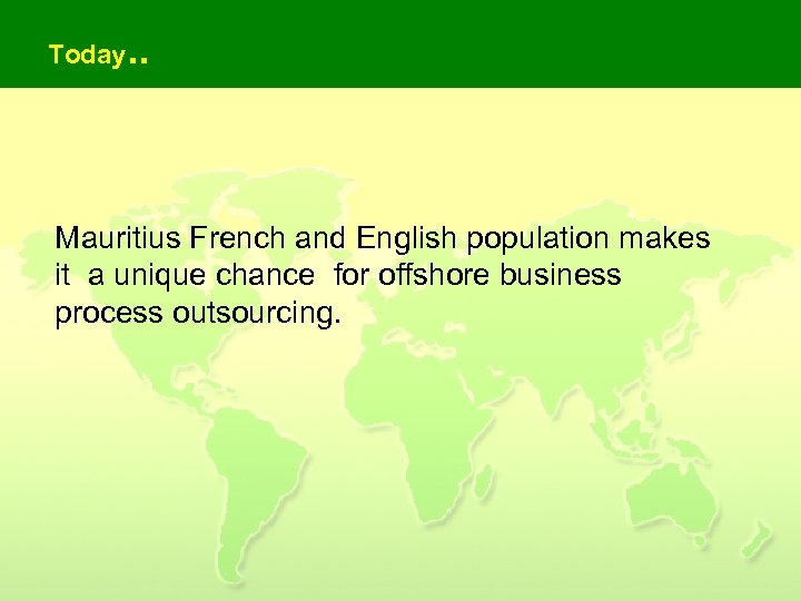 Today. . Mauritius French and English population makes it a unique chance for offshore business process outsourcing.