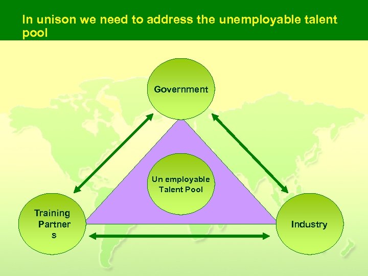 In unison we need to address the unemployable talent pool Government Un employable Talent Pool Training Partner s Industry