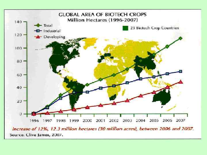 Территории, занятые в мире трансгенными сортами растений