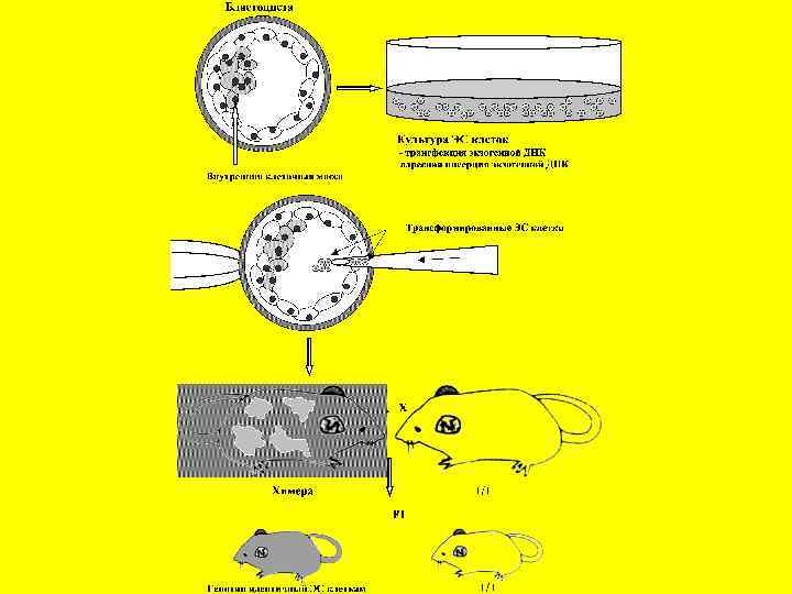 Генетическая модификация геномов эукариот 1. Направленное изменение структуры генов и хромосом генома-мишени 2. Введение (перенос) чужеродных генов от одного животного в геном другого вида 3. Создание генно-инженерных конструкций и введение их в геном животных Синонимы: генетическая трансформация –чаще применяется для прокариот Перенос генов или трансгенез – используется для геномов животных или эукариотических клеток