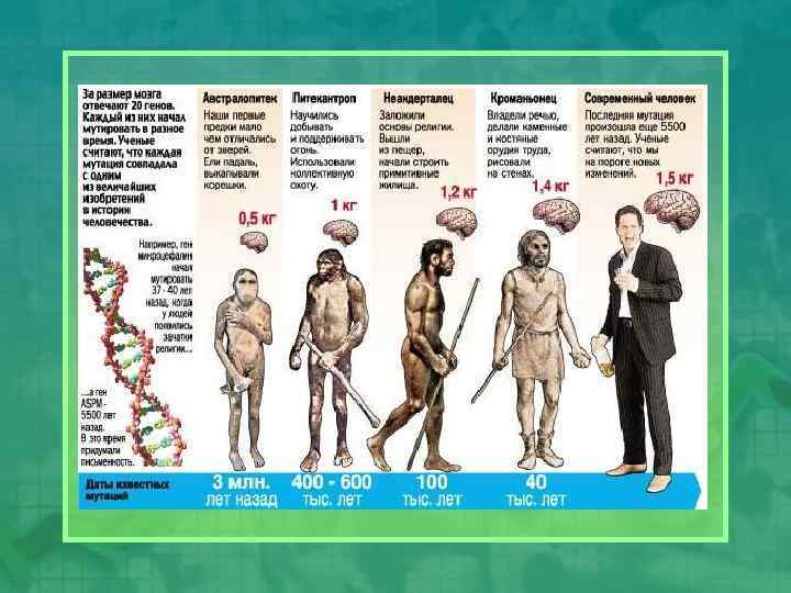 Эволюция была бы невозможна, если бы генетические программы воспроизводились абсолютно точно! Как вы знаете, копирование генетических программ – репликация ДНК – происходит с высочайшей, но не абсолютной точностью. Изредка возникают ошибки – мутации. Частота мутаций не одинакова для разных генов, для разных организмов. Она возрастает, иногда очень резко, в ответ на воздействие внешних факторов, таких как ионизирующая радиация, некоторые химические соединения, вирусы, …
