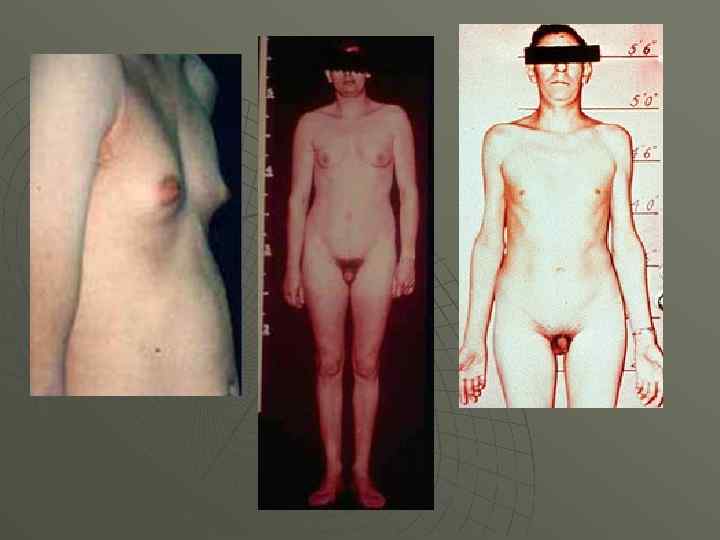 Синдром Клайнфельтера клинически проявляется лишь после полового созревания и поэтому диагностируется относительно поздно. До начала полового развития удается отметить только отдельные физические признаки: длинные ноги, высокая талия, высокий рост. Пик прибавки роста приходится на период между 5— 8 годами и средний рост взрослых пациентов составляет приблизительно 179, 2 + 6, 2 см. У некоторых, но не у всех пациентов с синдромом Клайнфельтера снижен интеллект и ограничены вербальные и познавательные способности Является самой частой формой мужского гипогонадизма, бесплодия, эректильной дисфункции, гинекомастии, но и одной из наиболее распространенных эндокринных патологий