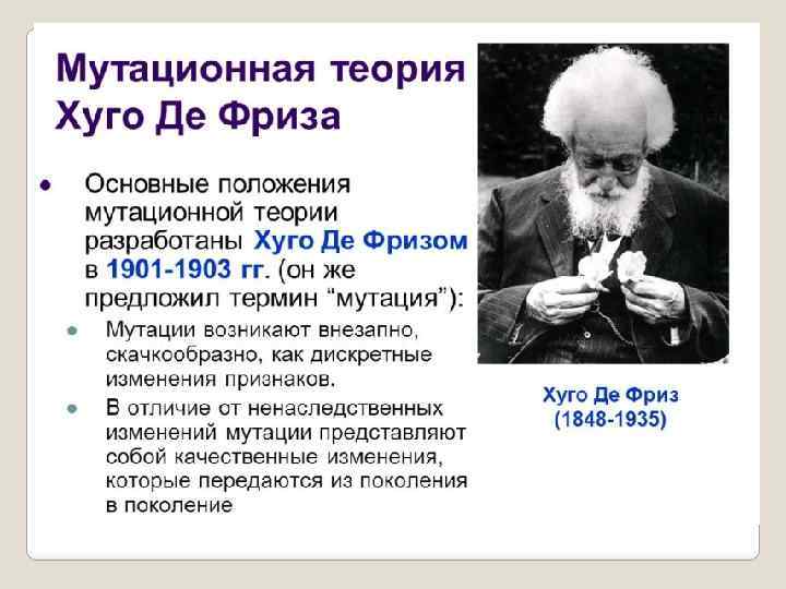 Август Вейсман. , немецкий зоолог и теоретик эволюционного учения. Впервые высказал и доказал правильность мнения о том, что переход родительских свойств зависит от некоего материального вещества, оказывающего влияние на развитие потомства и это вещество заключено в хромосомах и хроматине Вейсман — автор умозрительных теорий наследственности и индивидуального развития, неверных в деталях, но в принципе предвосхитивших современные представления о дискретности носителей наследственной информации и их связи с хромосомами, а также концепции о роли наследст-венных задатков в индивидуальном развитии.