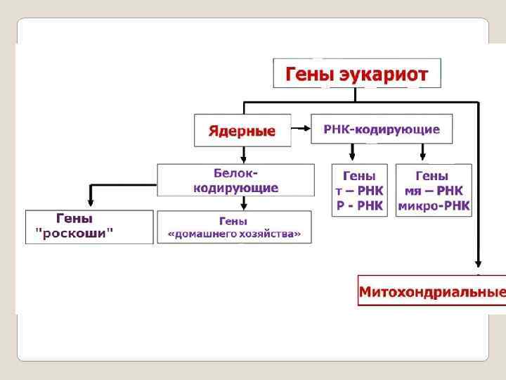 Классификация генов Существует несколько классификаций генов. 1. Конститутивные гены или гены общеклеточных функций (ГОФ-гены), гены домашнего хозяйства 2. Гены «роскоши» или гены специализированных функций (ГСФ-гены)