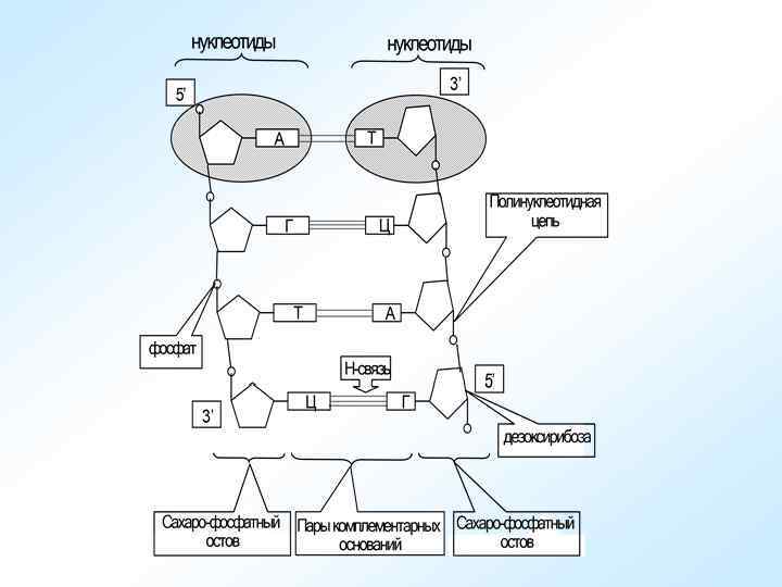 Соотношение между числом разных оснований в ДНК установлены Чаргаффом в 1949 г. и сыграли важную роль в построении двойной спирали. Чаргафф обнаружил, что у ДНК самого разного происхождения количество аденина равно количеству тимина, а количество гуанина – количеству цитозина. Эта закономерность была названа «правилом Чаргаффа» и выражается так: А = Т; Г = Ц или