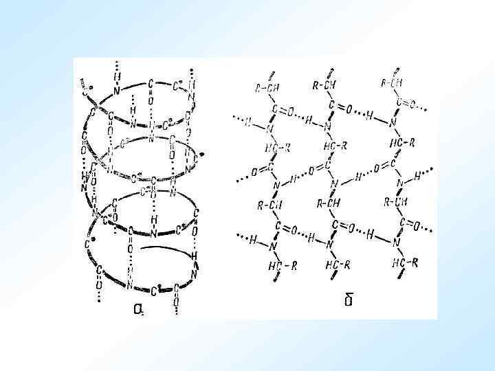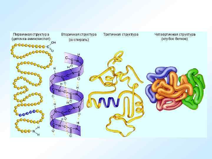 Белки – это большие полимерные молекулы, построенные из мономерных аминокислотных звеньев. В состав белков входят двадцать различных видов аминокислот. Все белковые аминокислоты (за исключением пролина) характеризуются общей структурой, обязательными элементами которой являются: NH 2 – аминогруппа; COOH – карбоксильная группа; H – атом водорода; радикал R – боковая группа.