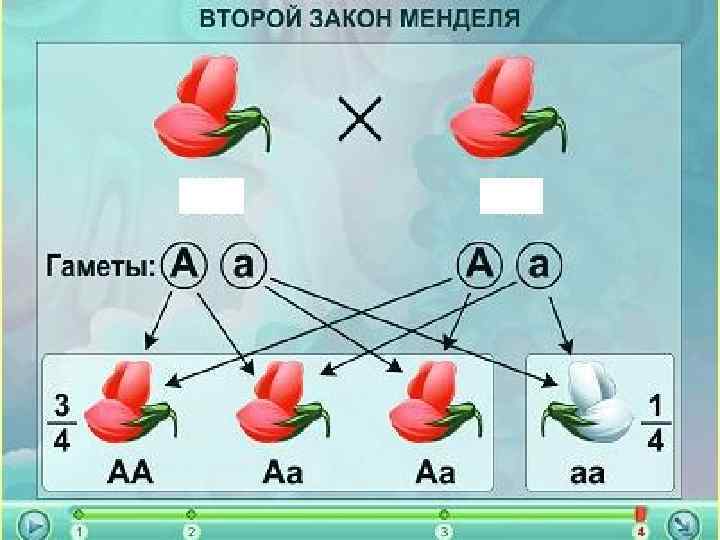 При скрещивании гибридов первого поколения друг с другом, Мендель обнаружил, что в потомстве появляется расщепление: F 1: 3/ F 2: 4 6022 1/ 4 2001 Три четверти семян имели доминантное проявление признака, а четверть семян – рецессивное.