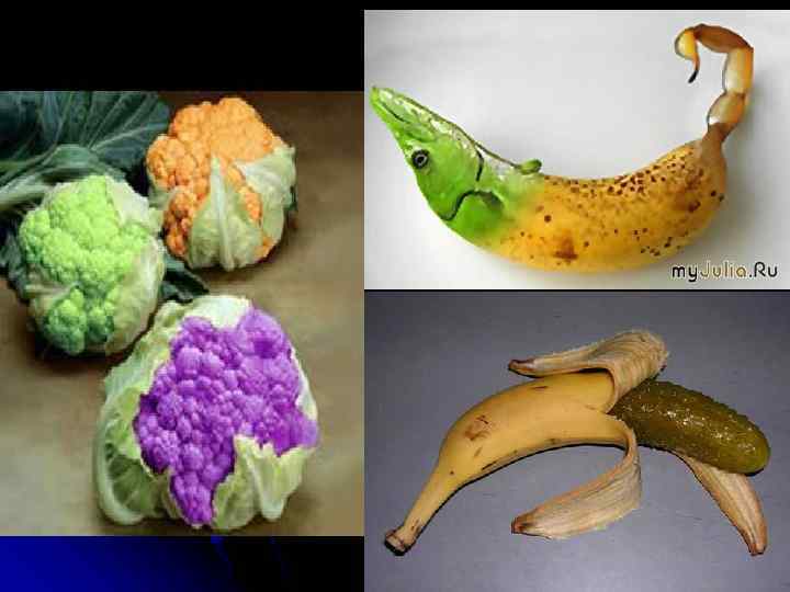 Продукты питания, подвергавшиеся генной инженерии или которые могут содержать генетически созданные ингридиетны l l l Амилаза - используется приготовлении хлеба муки, крахмала Сидр, вино, пиво и так далее Разрыхлитель (пекарский порошок) – добавки Хлеб - содержит сою Масло Канола Каталаза - используется приготовлении напитков, яичного порошка, сыворотки Зерновые культуры (крупы) - содержат сою Химозин Продукты из зерновых культур (круп) Крахмал из зерновых культур Сироп из зерновых культур