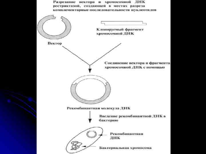 Чтобы встроить ген в вектор, используют ферменты — рестриктазы и лигазы, также являющиеся полезным инструментом генной инженерии. С помощью рестриктаз ген и вектор можно разрезать на кусочки. С помощью лигаз такие кусочки можно «склеивать» , соединять в иной комбинации, конструируя новый ген или заключая его в вектор. За открытие рестриктаз Вернер Арбер, Даниел Натанс и Хамилтон Смит также были удостоены Нобелевской премии (1978 г. ). Техника введения генов в бактерии была разработана после того, как Фредерик Гриффит открыл явление бактериальной трансформации. В основе этого явления лежит примитивный половой процесс, который у бактерий сопровождается обменом небольшими фрагментами нехромосомной ДНК, плазмидами. Плазмидные технологии легли в основу введения искусственных генов в бактериальные клетки. Значительные трудности были связаны с введением готового гена в наследственный аппарат клеток растений и животных. Однако в природе наблюдаются случаи, когда чужеродная ДНК (вируса или бактериофага) включается в генетический аппарат клетки и с помощью её обменных механизмов начинает синтезировать «свой» белок. Учёные исследовали особенности внедрения чужеродной ДНК и использовали как принцип введения генетического материала в клетку. Такой процесс получил название трансфекция. Если модификации подвергаются одноклеточные организмы или культуры клеток многоклеточных, то на этом этапе начинается клонирование, то есть отбор тех организмов и их потомков (клонов), которые подверглись модификации. Когда же поставлена задача получить многоклеточные организмы, то клетки с изменённым генотипом используют для вегетативного размножения растений или вводят в бластоцисты суррогатной матери, когда речь идёт о животных. В результате рождаются детеныши с изменённым или неизменным генотипом, среди которых отбирают и скрещивают между собой только те, которые проявляют ожидаемые изменения.