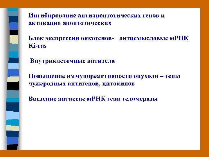 МЕТОДЫ ПОВЫШЕНИЯ ИЗБИРАТЕЛЬНОСТИ ДОСТАВКИ И ЭКСПРЕССИИ ГЕННОЙ КОНСТРУКЦИИ Введение в вектора тканеспецифического энхансера с индуцируемым промотором и инсулятором - кассеты Введение в конструкцию металлотионеиновых и температурочувствительных промоторов Введение в конструкцию промоторов, управляемых гормонами Снабжение конструкции олигонуклеотидами, позволяющими ей экспрессироваться независимо от места страивания в геном