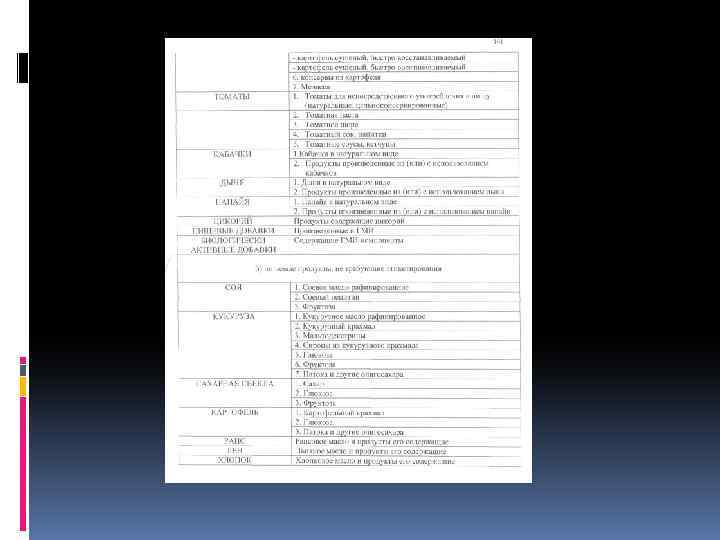 Пищевые продукты и продовольственное сырье, имеющие генно-инженерномодифицированные аналоги – пищевые продукты и продовольственное сырье, произведенные из растений или животных, имеющих генно инженерно модифицированные сорта и линии (породы), представленные на мировом продовольственном рынке.