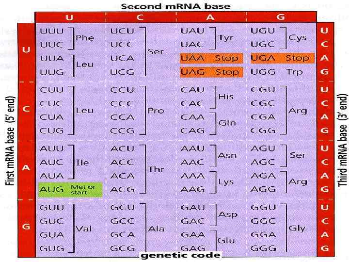 Трансляция РНК – управляемый синтез полипептидов. Свойства генетического кода. 1. Триплетность • триплеты или кодоны и. РНК (61) • стартовые кодоны АУГ и УГГ • антикодоны т. РНК (около 20) • нонсенс-триплеты (3) 2. Вырожденность 3. Специфичность 4. Универсальность 5. Неперекрываемость 6. Наличие рамки считывания