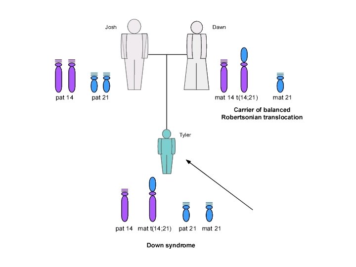 РОБЕРТСОНОВСКАЯ ТРАНСЛОКАЦИЯ • Вовлекаются акроцентрические хромосомы • Центрическое слияние двух акроцентрических хромосом с потерей коротких плеч