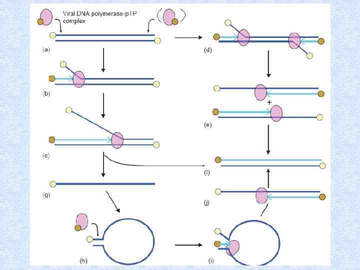 Схема репликации ДНК аденовируса вирусный комплекс ДНКполимераза - р. ТР Родительский ТР, ковалентно связанный с геномом
