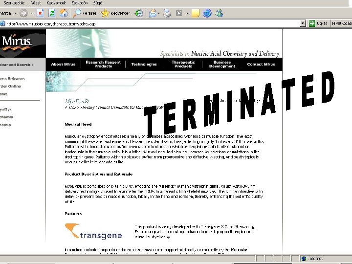PTC – Genzyme ATALUREN – Phase IIb § 2010 March § A PTC Therapeutics failed in the Phase IIb trial Tested patients: DMD with nonsense dystrophin mutation Primary endpoint: 6 Min Walking Test – did not increased significantly during the 48 weeks treatment period § § BUT! § In CF the Phase II trial was successfull, Phase III trial is ongoing § Nonsense mutation hemophilia A & B (nm. HA/B) and nonsense mutation methylmalonic acidemia (nm. MMA) Phase II trials are ongoing as well.