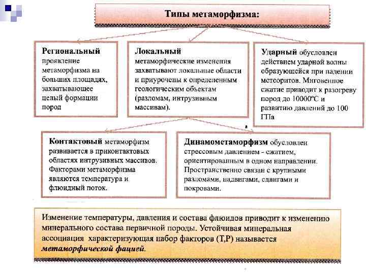 Типы метаморфизма n Изохимическим метаморфизмом называется тот его вид при котором состав породы меняется НЕСУЩЕСТВЕННО!!! Не изохимическим метаморфизмом (МЕТАСОМАТОЗОМ) соответсвенно называется тот вид для которого характерно существенное изменение состава пород (рассматривается в отдельной презентации)
