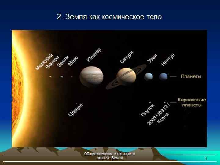 2. Земля как космическое тело Характеристики Земли • • • Диаметр Масса Плотность Площадь Объем Период обращения – 12756 км – 5, 98 x 1024 кг, – 5510 кг/м 3, – 510 млн. км 2, – 1, 083 x 1012 км 3 – 365, 26 суток Общие сведения и геологии и планете Земля 5