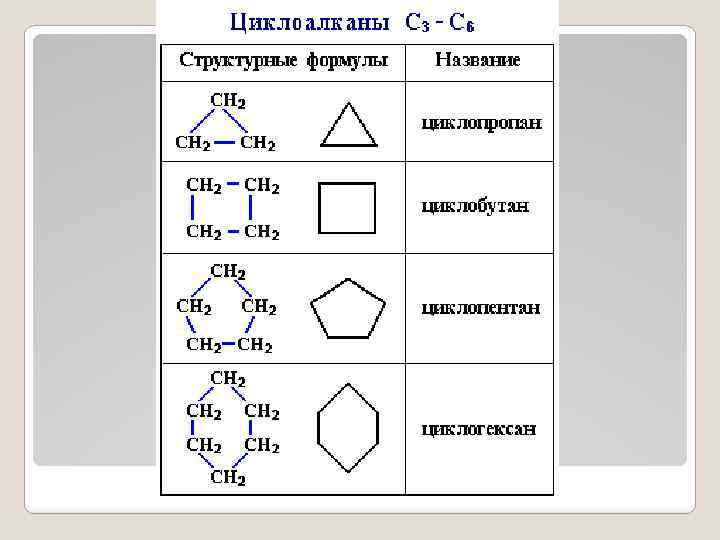 Нафтеновые УВ, циклановые, циклоалкановые, циклопарафиновые, полиметиленовые УВ или нафтены (Nf) состоят из замкнутых в цикл метиленовых групп СН 2. Атомы углерода в циклоалканах, как и в алканах, находятся в sp 3– гибридизованном состоянии и все их валентности полностью насыщены. Нафтеновые УВ
