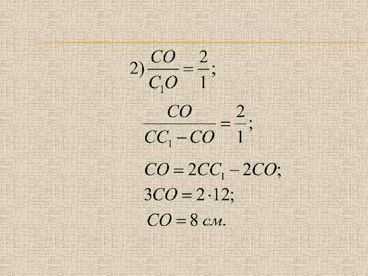 Задачи для закрепления 1. 2. Найдите площадь треугольника и его сторону лежащую против угла в , если две другие стороны равны и В , и – медианы, они пересекаются в точке О, Площадь треугольника ABC равна 9 см. Найдите: