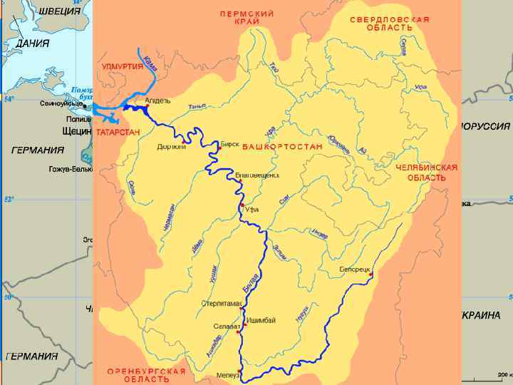 Речные системы (главная река): Северная Двина (верховья), р. Чу (верховья), р. Висла, р. Камчатка (верховья), р. Зеравшан, р. Исикари (верховья), р. Белая (Южный Урал), р. Влтава, р. Кубань (левые притоки), р. Ока, Майн (среднее течение), р. Ингода.