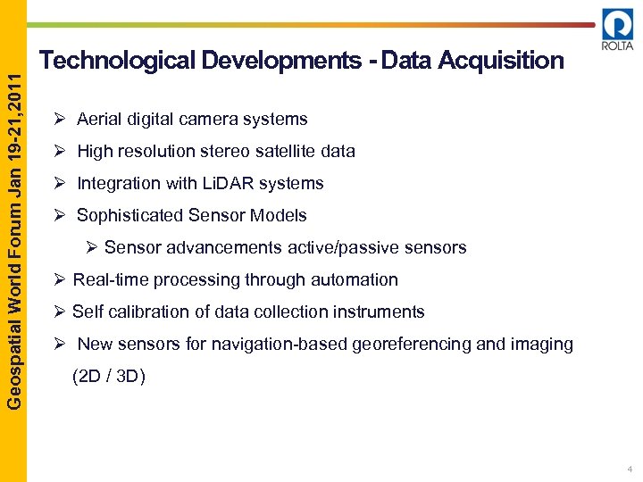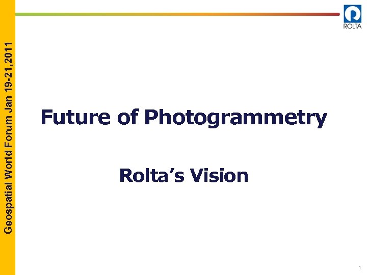 Geospatial World Forum Jan 19 -21, 2011 Future of Photogrammetry Rolta’s Vision 1