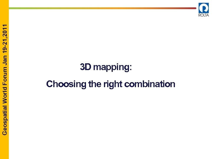 Geospatial World Forum Jan 19 -21, 2011 3 D mapping: Choosing the right combination