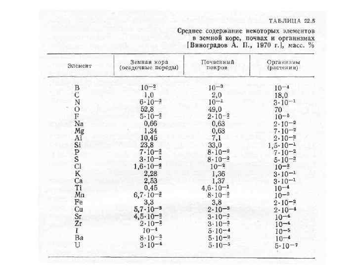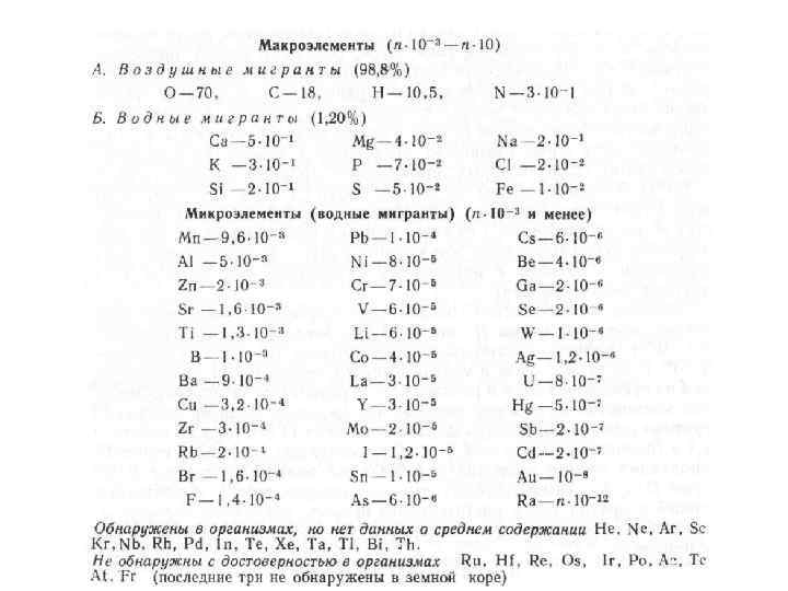 От чего зависит состав организмов? 1. От вида организма 2. От стадии развития организма 3. От того, какая часть организма рассматривается 4. От климатических условий 5. От геохимических особенностей территории (состав почвообразующих пород).