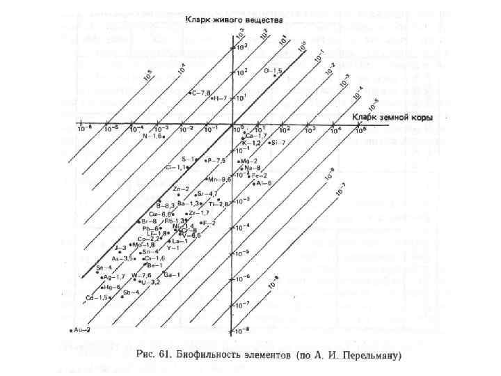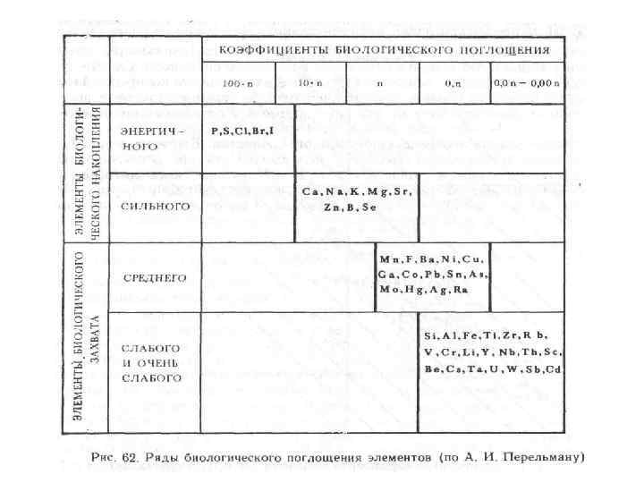 Коэффициент биологического поглощения (Ах) – это отношение содержания элемента в золе организма к кларку (Б. Б. Полынов) Ах >1 – элементы накапливаются живым веществом (P, S, Cl, Br, I, Ca, K, Na, Mg, Sr, Zn, B, Se).