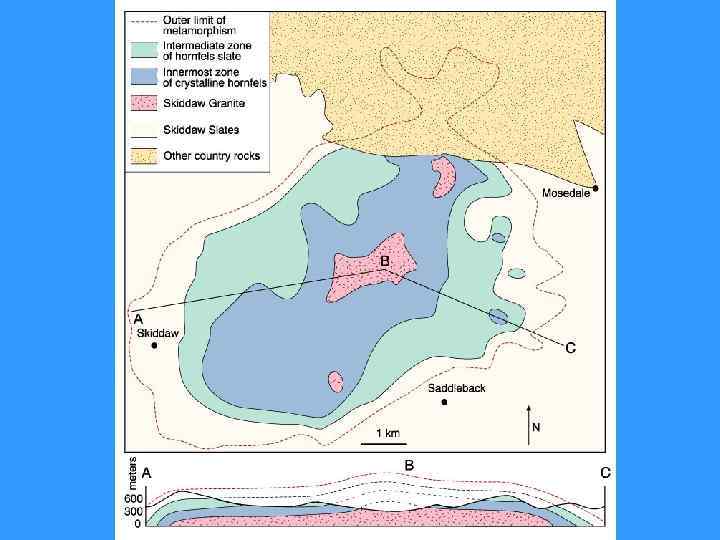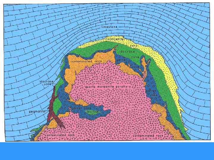 Контактовый метаморфизм Роговики • термальный метаморфизм, источник тепла – интрузии • узкие зоны (< 1 км)