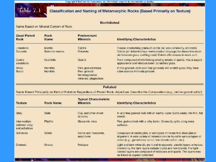 МЕТАМОРФИЗМ обычно приводит к изменениям в: • минералогии образование метаморфических минералов • текстуре образование метаморфической “ткани”