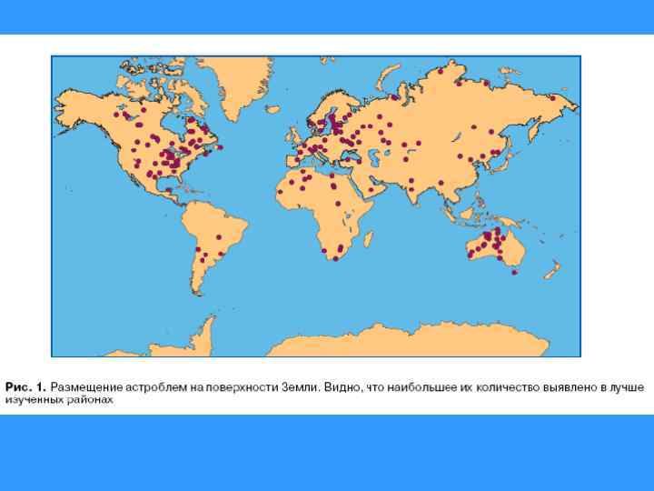 Распределение фанерозойских импактных кратеров мира, в которых установлены ударнометаморфизованные породы (Геология…, 1980).