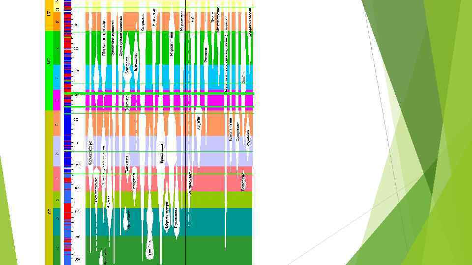 Метод комплексного анализа 1. Выяснение распределения всех окаменелостей в разрезах, установление смены комплексов и прослеживании выделенных комплексов от разреза к разрезу. Метод иллюстрируется на графиках. Позволяет установить естественные рубежи смены фауны и флоры. Количественные методы корреляции Заключаются в использовании математического аппарата для анализа палеонтологических комплексов. Процентно–статистическийметод был введен в стратиграфию Ч. Лайелем. Метод - сравнение изучаемого слоя со слоями опорного разреза по содержанию общих окаменелостей. Сопоставляют слои по наибольшему содержанию общих видов (по специально разработанным коэффициентам сходства). Применяются в комплексе с другими методами.