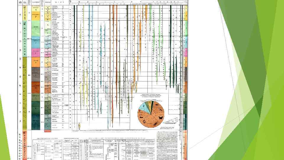 Непалеонтологические методы 1. Литологические методы Метод маркирующих горизонтов – слои, пачки имеющие отличительные черты прослеживаются на значительные расстояния 2. Геофизические методы (основаны на сравнении пород по их физическим свойствам) Анализ результатов каротажа (исследования скважин) Электрический каротаж наиболее распространен. Разная способность горных пород поглощать воду, нефть, промывочную жидкость отражается на их электрических свойствах. По необсаженной скважине непрерывно измеряют естественное электрическое поле (ПС) и (КС). Разница в значениях ПС и КС позволяет различать обломочные, глинистые и карбонатные породы, выделять рудные тела, пласты насыщенные нефтью и газом. Радиоактивный каротаж основан на измерении как естественного излучения, так и возникающего при искусственном облучении. Повышенной радиоактивностью обладают битуминозные породы, калийные соли, а низкой – ангидрит, гипс, доломиты. Применяют еще акустический, термический, механический и другие виды каротажа.