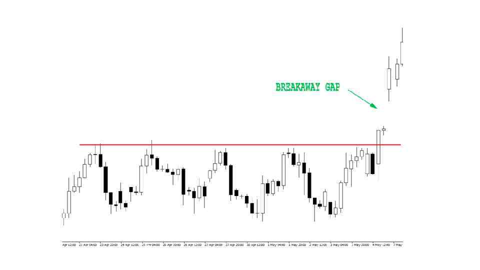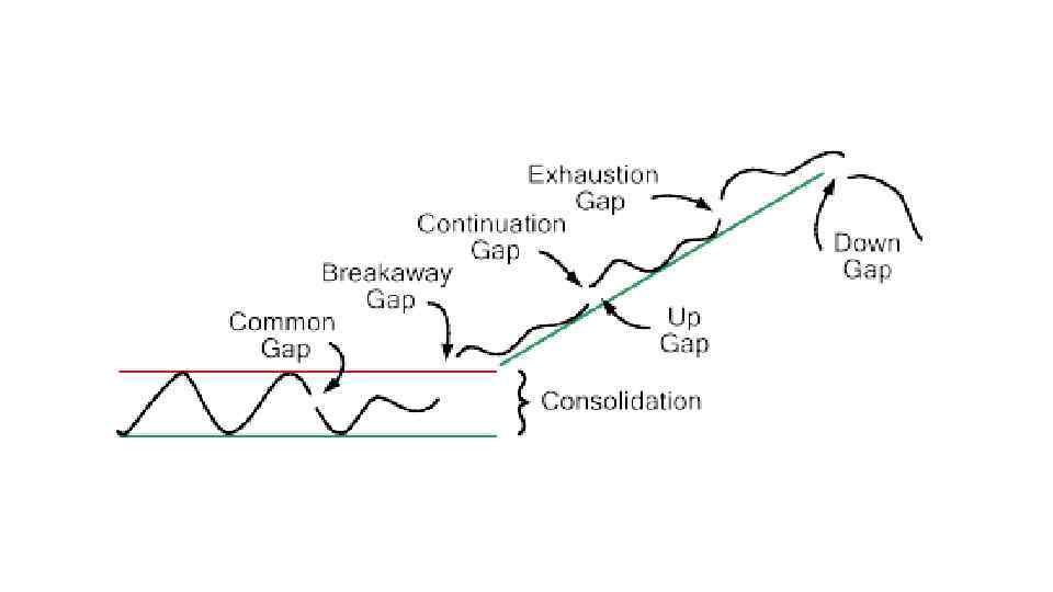 Четыре типа гэпов 1) Пробивной гэп (Breakthrough gap) 2) Гэп продолжения (Continuation gap) 3) Гэп истощения (Exhaustion gap) 4) Простой гэп (Common gap) ___________ • Тип определяется не раньше закрытия дневной свечи!