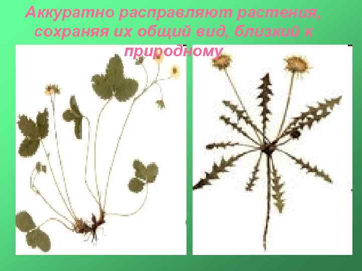 Аккуратно расправляют растения, сохраняя их общий вид, близкий к природному